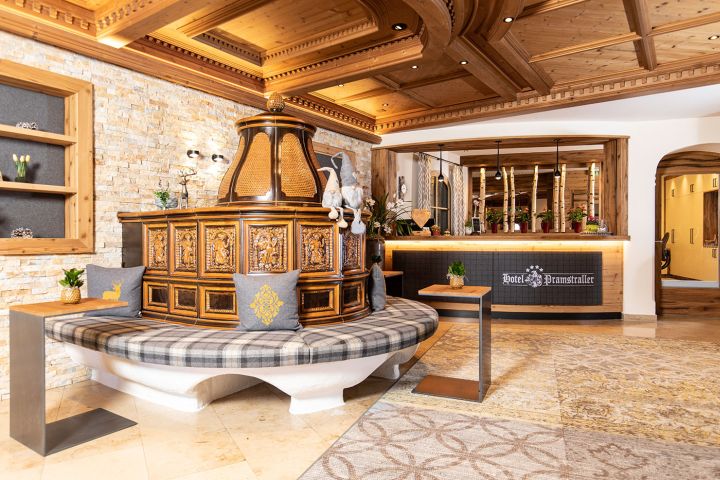 Das Hotel Pramstraller verfüg über einen Empfangsbereich mit Rezeption, Lift, WLAN, Restauran, Hotelbar, gemütliche Zirbenstube, Kaminhalle, Speiseraum, Wintergarten, Gartenanlage mit Sonnenterrase und Spielplatz., Kinderspielzimmer Wellnessbereich. Parkplätze nach Verfügbarkeit kostenfrei. Haustiere sind nicht erlaubt.
